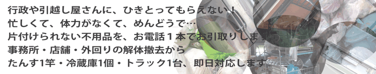 ●不用品と粗大ゴミの回収…たんすひと竿、イス1脚~トラック1台まで即日回収